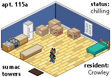 This the apartments page. All currently owned apartments will be displayed here. Since the image links are the same when your apartment is updated, you can link to the image directly and it will update when the site does.